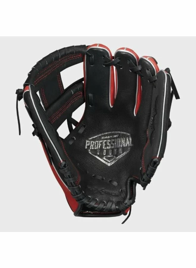 Specifically designed for the 8U player, the Professional Youth Series is made with soft genuine pigskin leather and combined with an embossed Hyperlite synthetic, keeping the glove nice and light for young players. The Flex Notch™ closure system makes the glove easy to squeeze, and extended finger gussets provide a better fit and more leverage for catching the ball. Professional-style embroidered Easton and Screamin’ E logos finish off the glove.