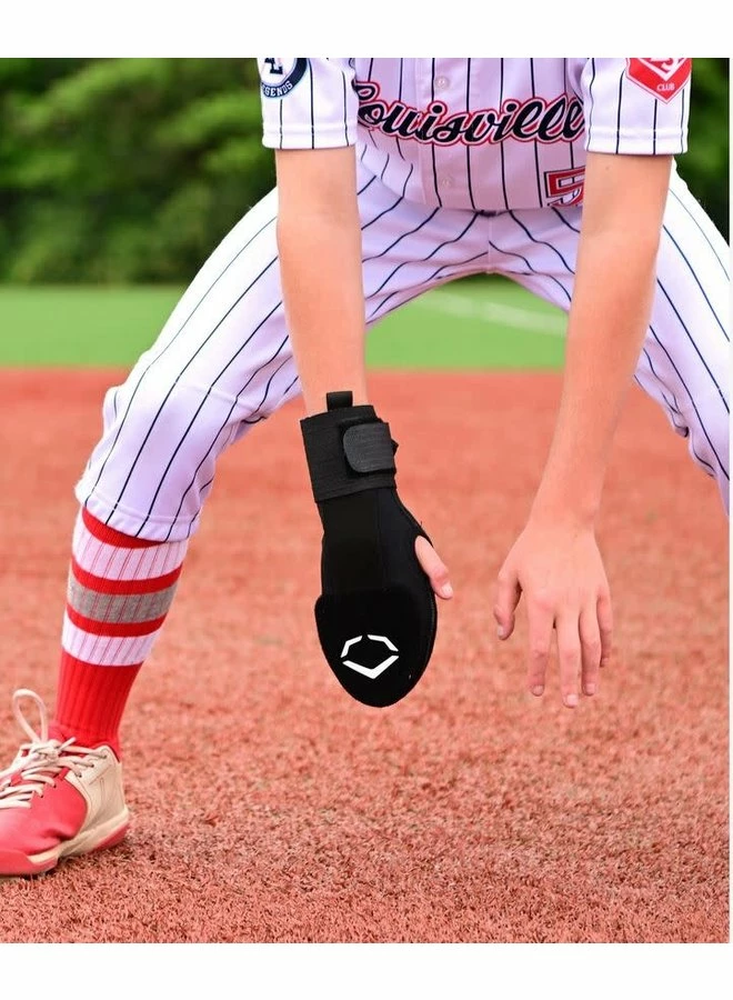 Don’t get sidelined swiping bags. Protective plates on the top and underside of your hand safeguard against spikes and jammed fingers, and protective stabilization strips secure your wrist. An elastic compression straps to keep the mitt in place as you’re rounding the basepaths, keeping your lead hand safe on game-changing slides. The youth sliding mitt is recommended for players under the age of 12.