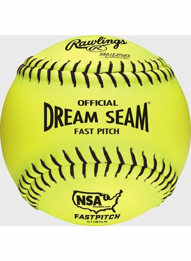 The Official 11″ fastpitch softballs has blue stitching and are approved for play in the USSSA. These Dream Seam softballs have a raised seam with a high density cork and Pro Leather cover.