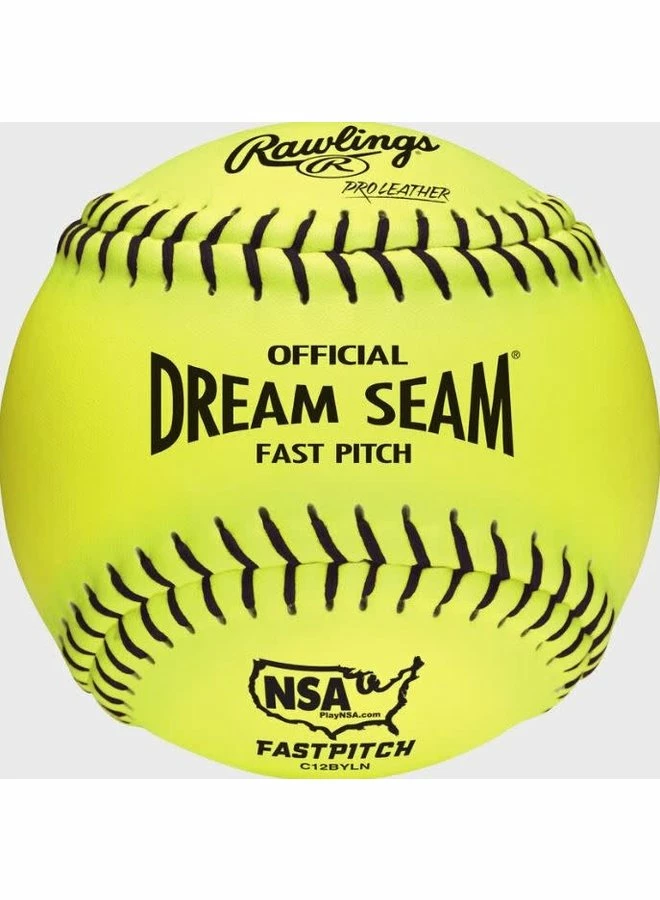 The Official 12″ fastpitch softballs have black stitching and are approved for play in the NSA. These Dream Seam softballs have raised seams with a high density cork and Pro Leather cover.